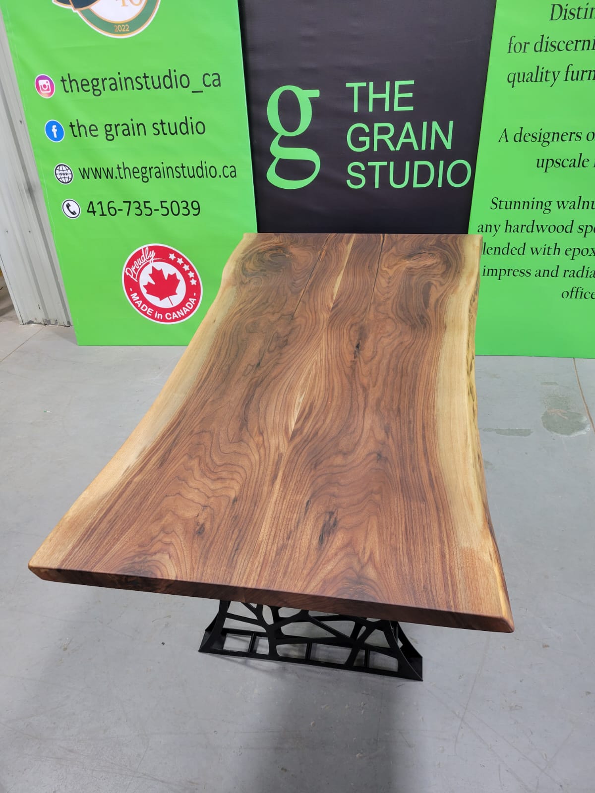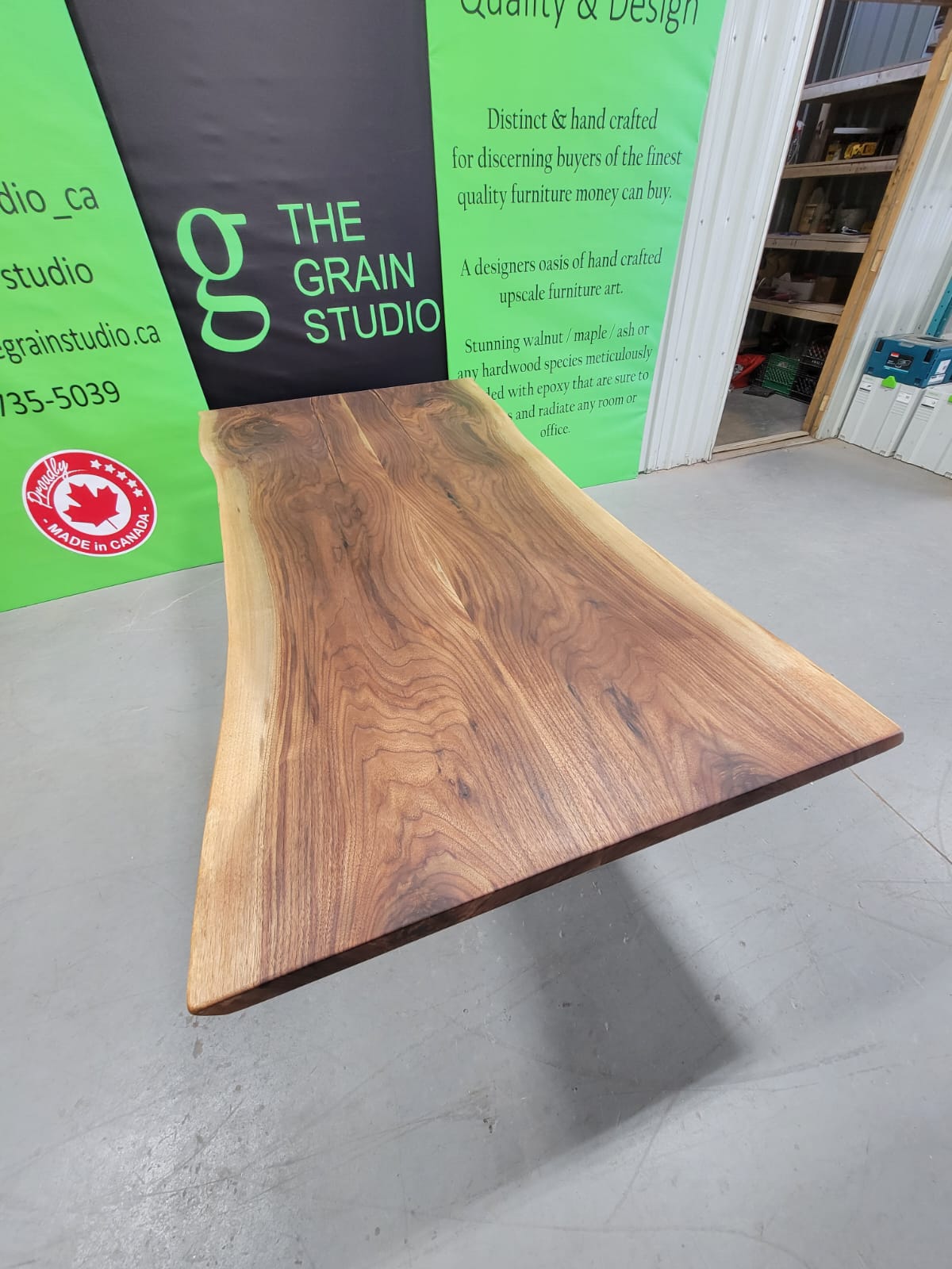 As Shown: 44” x 88” bookmatch Walnut dining table.